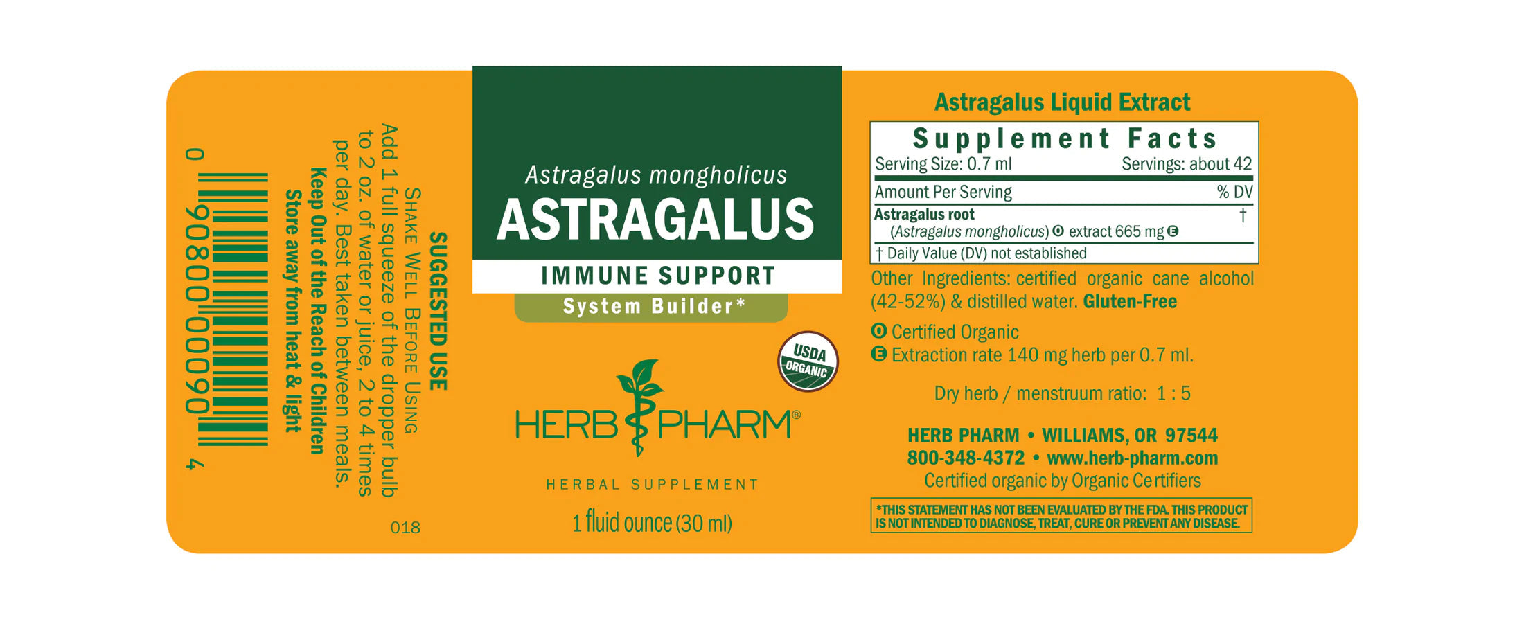 SERVINGS: about 42INGREDIENTS: Astragalus root (Astragalus mongholicus). Extraction rate 140 mg herb per 0.7 ml.