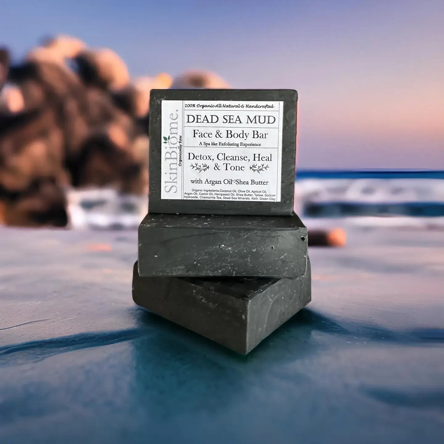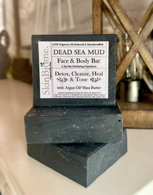 Dead Sea Mud Face & Body BarGreen Clay Minimizes Pores Minimizes Wrinkles & Lines Restores Skin pH Detoxing For skin conditions/acne Gently Cleanses & ExfoliatesActivated Charcoal binds to dirt & debris and pulls them to the surface, which makes this bar great for detoxing impurities. Dead Sea Mineral Mud Dead Sea Mineral Mud has been sought after for years for its healing properties.There are 21 minerals in the Dead Sea mineral mud.