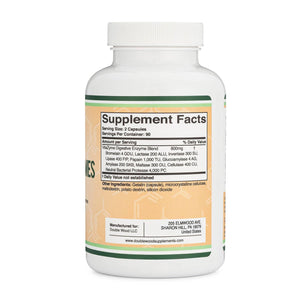 Digestive Enzyme blend contains the following amounts of the most important 10 digestive enzymes: * Bromelain – 4 GDU * Lactase – 200 ALU * Invertase – 300 SU * Lipase – 400 FIP * Papain – 1000 TUG * lucoamylase – 4 AG * Amylase – 200 SKB * Maltase – 300 DU * Cellulase – 400 CU * Neutral Protease – 4000 PC