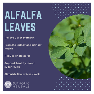 Promotes Heart Health: Rich in phytonutrients, Alfalfa Leaf supports cardiovascular health by helping to maintain healthy cholesterol levels and blood pressure.