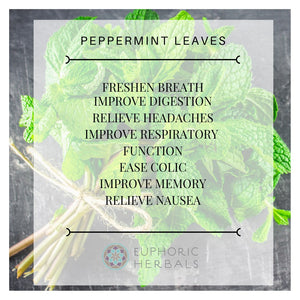 Peppermint Leaf, harvested from the Mentha piperita plant. Known for its cooling menthol flavor and aroma, Peppermint Leaf is a versatile herb used in teas, culinary dishes, and natural remedies. It aids digestion, soothes stomach discomfort, and freshens breath. Peppermint's natural menthol content provides a revitalizing sensation that promotes clarity and alertness. Embrace Peppermint Leaf for its soothing properties and aromatic charm, enhancing both culinary creations and holistic well-being effortlessly.Latin Name: Mentha piperita