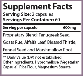 Organic Ingredients: Fenugreek Seed, Goats Rue, Marshmallow Root, Fennel Seed, Blessed Thistle, and Alfalfa Leaf