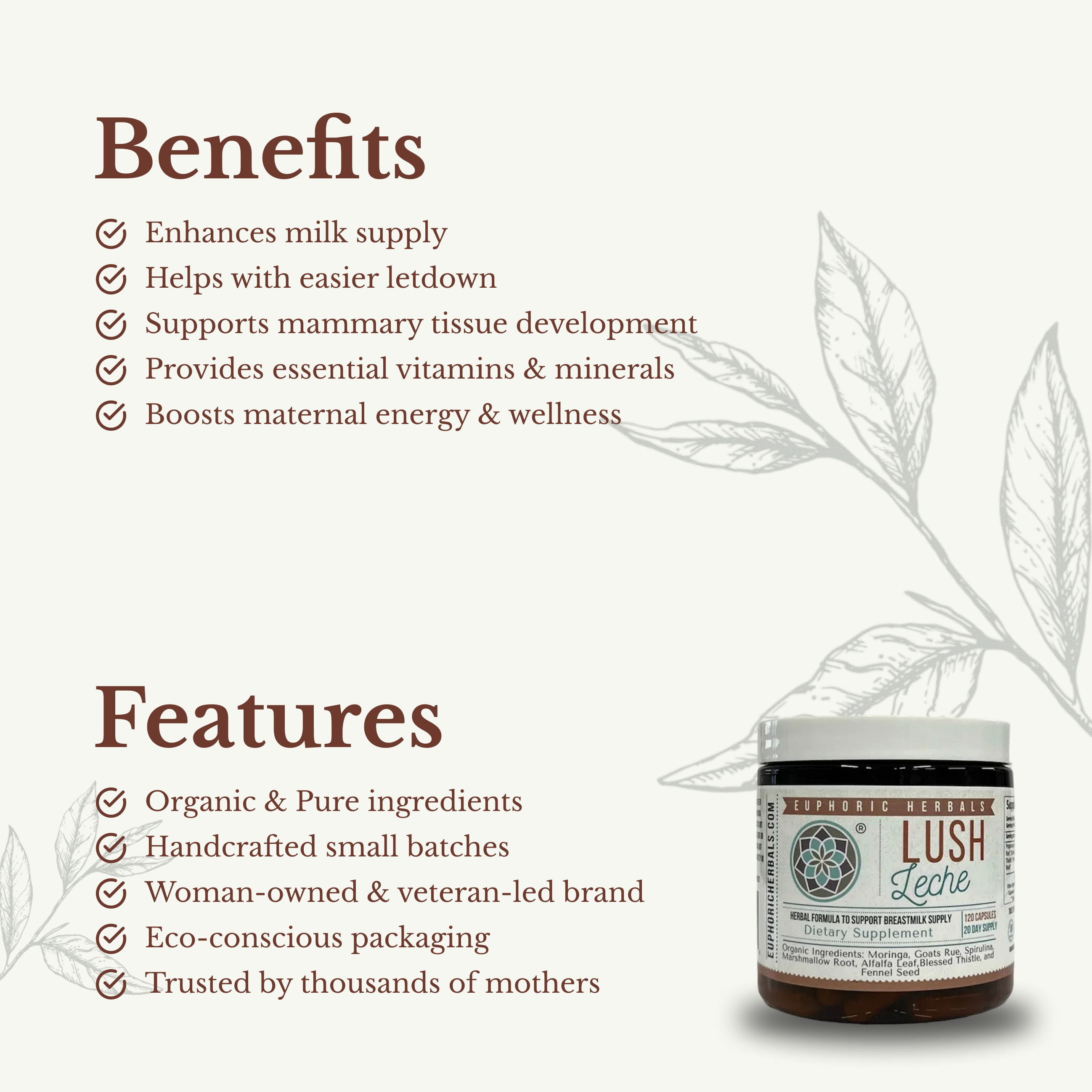 Packed with a powerful blend of carefully selected ingredients, Lush Leche offers a comprehensive solution to boost lactation and promote overall maternal wellness.