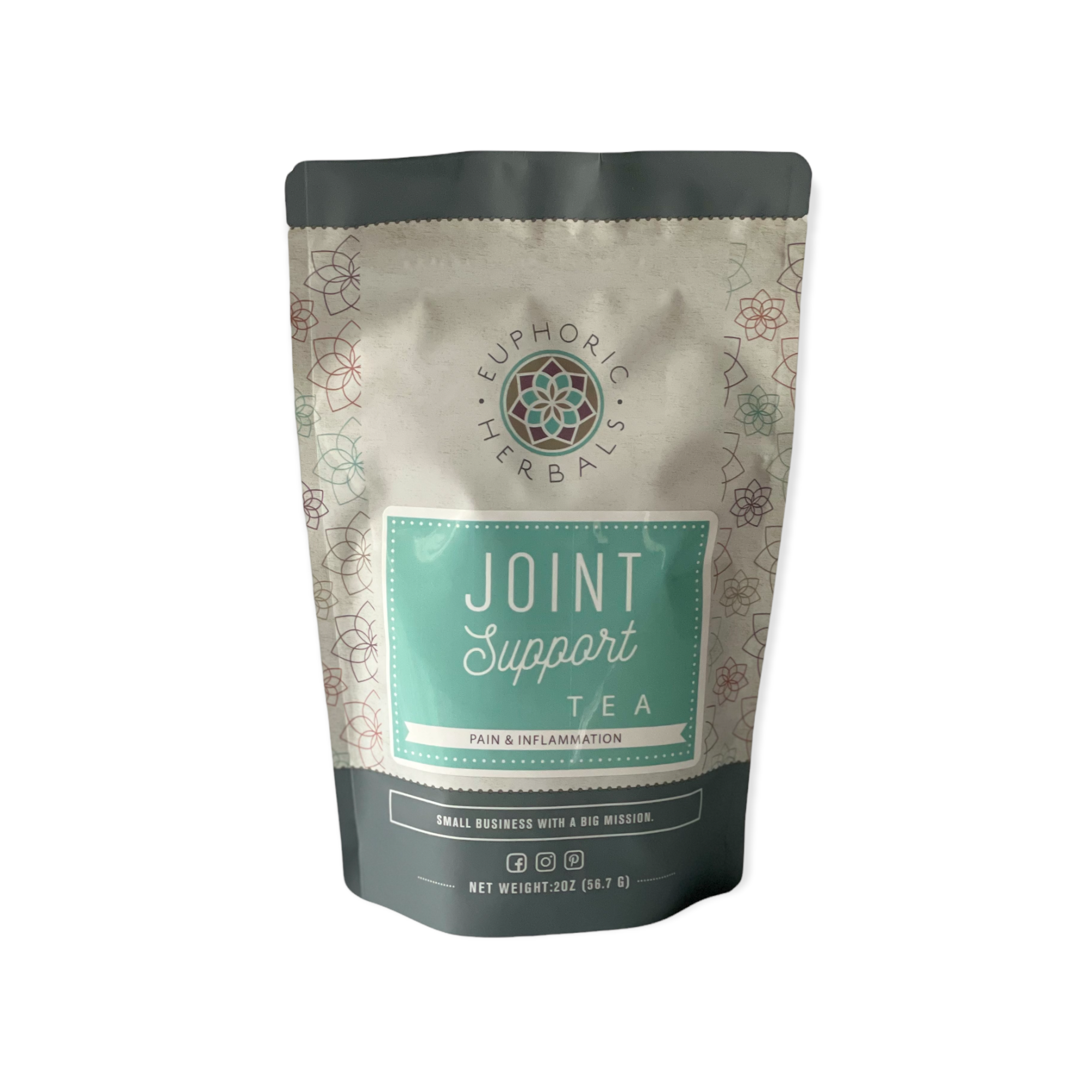 Designed to rejuvenate your body and ease the discomfort associated with joint-related issues, this delightful herbal infusion is a must-have addition to your daily wellness routine.Devil's Claw Root: Known for its anti-inflammatory properties, Devil's Claw Root can help reduce joint pain and swelling, supporting your joints' flexibility and mobility.Dandelion Leaf: Packed with essential vitamins and minerals, Dandelion Leaf aids in flushing out toxins from your body, assisting in joint function and overall health.Licorice Root: With its sweet and earthy flavor, Licorice Root not only enhances the taste of the tea but also boasts anti-inflammatory and antioxidant properties that aid in soothing joint discomfort.Turmeric Root: A powerhouse ingredient, Turmeric Root contains curcumin, a potent compound renowned for its joint-supporting and anti-inflammatory effects.Peppermint Leaf: The refreshing addition of Peppermint Leaf not only enlivens the flavor but also provides natural pain-relieving properties, helping to ease joint discomfort.Chamomile Flower: Known for its calming properties, Chamomile Flower can help reduce stress and promote relaxation, which may contribute to overall joint well-being.Burdock Root: Rich in antioxidants, Burdock Root helps protect your joints from oxidative stress while supporting joint mobility.Nettle: Nettle contains essential nutrients, including vitamins and minerals, which play a vital role in maintaining healthy joints and supporting your body's natural inflammatory response.Citrus Peel: Bursting with Vitamin C and bioflavonoids, Citrus Peel complements the other ingredients, promoting collagen production for healthier joints.Organic Ingredients: Devil's Claw, Nettle Leaf, Burdock Root, Chamomile Flowers, Peppermint Leaf, Licorice Root, Citrus Peel, Stevia Leaf.