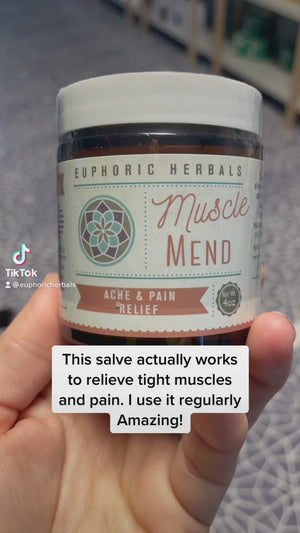 Muscle Mend for fitness, general aches and aliments or the pain in your neck caused by your co-sleeping child who refuses to sleep in their own bed; additionally aids in reducing inflammation and pain.Crafted with care using a potent blend of botanical ingredients, this salve is your go-to remedy for post-workout recovery, daily aches, and pains.Arnica flowers, renowned for their anti-inflammatory properties, working to reduce swelling and ease discomfort. Combined with the invigorating scent of Rosemary leaf and the soothing touch of Goldenrod, this formula provides a holistic approach to muscle relief.Infused with nourishing oils including Sweet Almond Oil and Olive Oil, Muscle Mend Salve deeply moisturizes the skin while delivering therapeutic benefits.