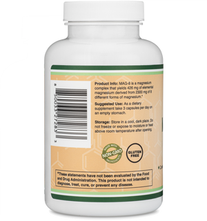 Double Wood's MAG-8 Magnesium supplement provides 426 mg of elemental magnesium per serving, which is the daily recommended value for adult males. This amount of elemental magnesium is provided by 2,300 mg of 8 different forms of magnesium