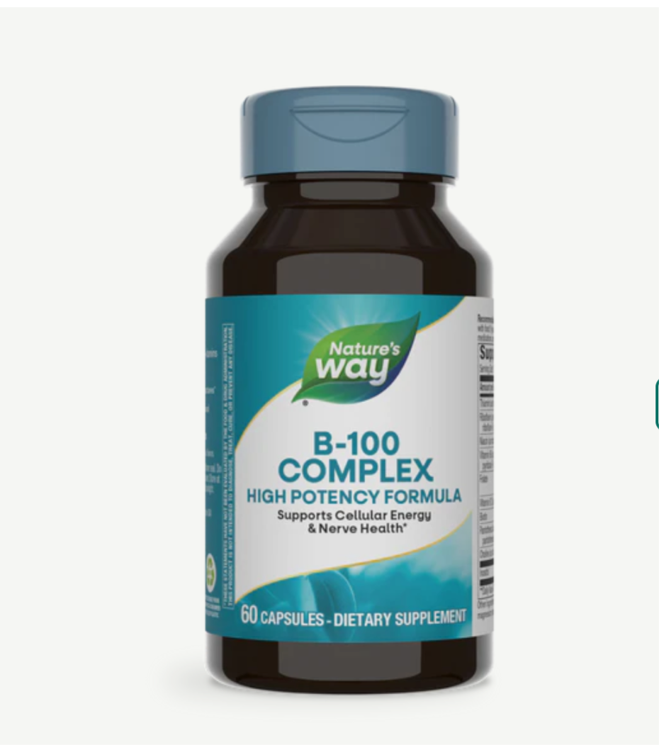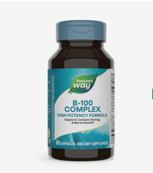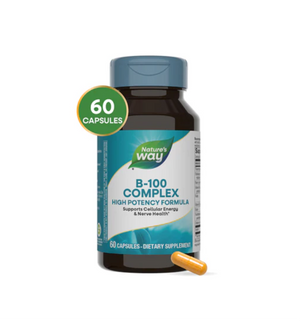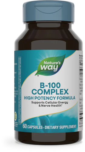Vitamin B-100 ComplexSupports Cellular Energy & Nerve Health*B-vitamins are essential to your daily wellness, as they help convert the food you eat into the energy you need for every step of your journey.* Nature’s Way B-100 Complex helps support cellular energy and nerve health, manufacture hormones and proteins, and maintain nerve structures.*Over 50 Years of QualityHelping you live your healthiest life is our passion. We enrich your wellness journey with high-quality supplements and obsess over quality so you don’t have to.