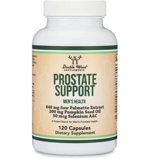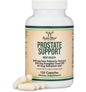 Double Wood's Prostate Support Supplement for Men's Health includes saw palmetto, pumpkin seed oil, and selenium. These ingredients have been clinically studied to support a healthy prostate and healthy urination habits.