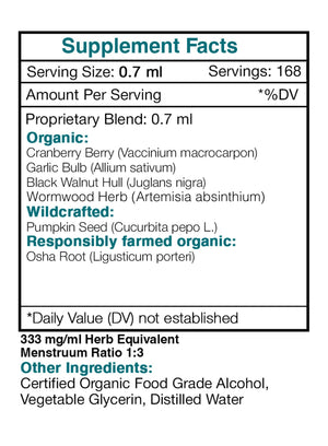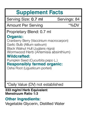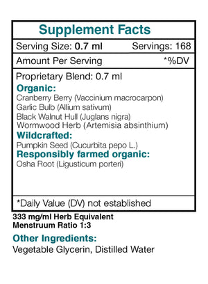 Experience the benefits of our carefully selected herbal Tribal Parasite Purge blend, which is traditionally used to promote intestinal health. It contains Cranberry, Garlic, Black Walnut, Osha, Wormwood, and Pumpkin.