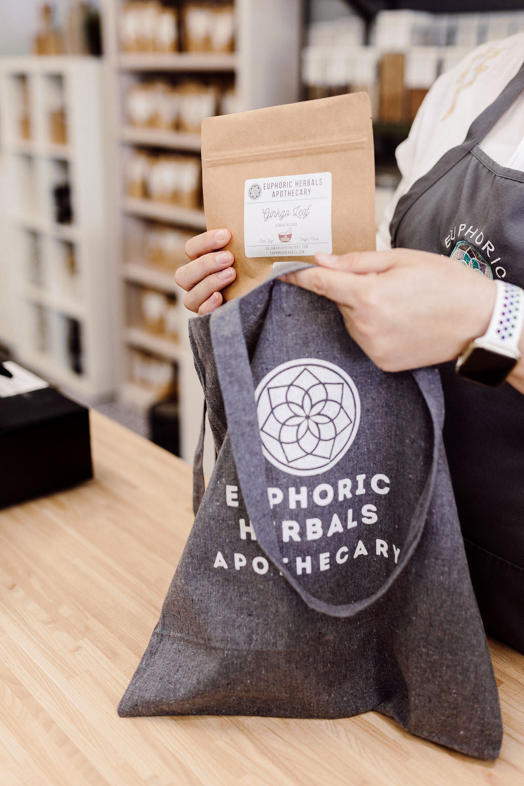 Recycled Cotton Tote BagMeasurements 14Iin Wide x 16in Height.Incredibly durable for all your books & herbs!