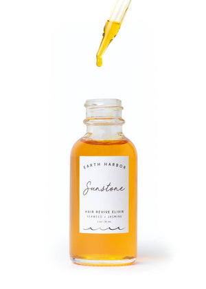 Fortify, nourish, and revive dull or damaged hair using superfood nutrition of Seaweed and Coconut, anti-pollution properties of Jasmine and Calendula Flowers, and ultra-rejuvenation of Carrot Seed and Jojoba Oils. When massaged into your scalp, SUNSTONE Hair Revive Elixir promotes a flow of positive energy to hair follicles and envelops your hair in a crowning aroma of fruit, flowers, and fresh earth. She is the perfect herbal tonic for tackling dry scalp, scraggly ends, and worn strands — a ray of sunshine in your hair care ritual that was created with all hair types in mind.