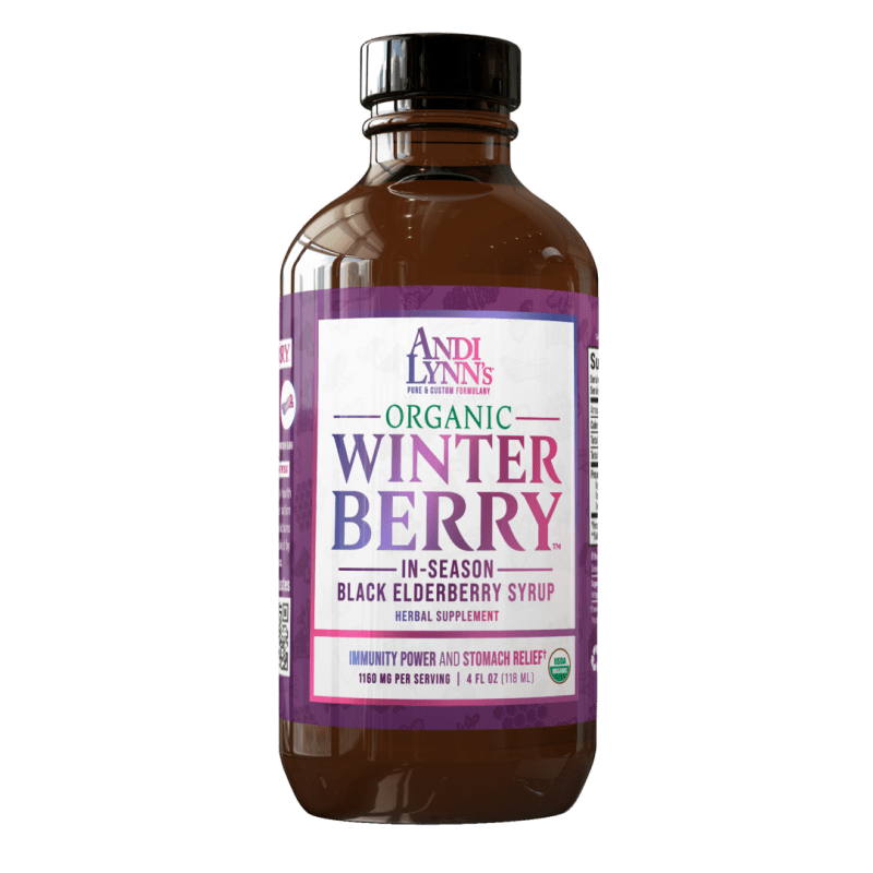 Andi Lynn’s WinterBerry Elderberry Syrup is formulated to provide upper respiratory support as trees, grasses and flowers awaken and bloom.