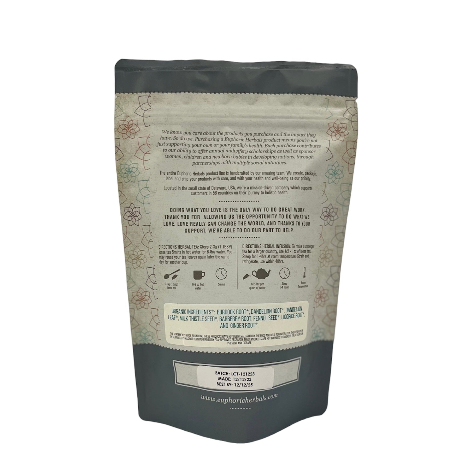 Organic Ingredients*: burdock root*, • dandelion root*, dandelion leaf*, milk thistle seed*, barberry root, fennel seed*, licorice root*, and ginger root*.Liver Cleanse is crafted to support your body's natural detoxification process. Each element plays a pivotal role in promoting liver health.🌿 Burdock root, known for its purifying properties, combines seamlessly with the robust flavors of dandelion root and leaf, working together to stimulate liver function and aid in flushing out toxins.🌿Milk thistle seed, a powerhouse of antioxidants, supports liver cell regeneration, contributing to overall liver vitality.🌿Barberry root adds a touch of bitterness, promoting bile production and aiding digestion, while fennel seed brings a subtle sweetness and helps alleviate bloating.🌿Licorice root, with its natural sweetness, harmonizes the blend and provides anti-inflammatory benefits, contributing to a soothing experience.🌿Ginger root adds a zesty kick while promoting circulation and reducing inflammation.
