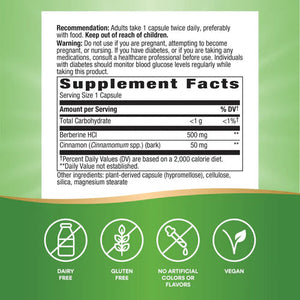 Berberine with Cinnamon supports metabolic and cardiovascular health.* This daily formula supports healthy blood sugar levels already within a normal range and helps maintain healthy cholesterol and triglyceride levels already within a normal range.* Adults take 1 capsule twice daily, preferably with food.