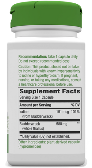 Support digestive health with Nature's Way Bladderwrack. Bladderwrack is a natural source of minerals and is guaranteed to contain 0.04% iodine. Bladderwrack is found off the shorelines of most northern seas.