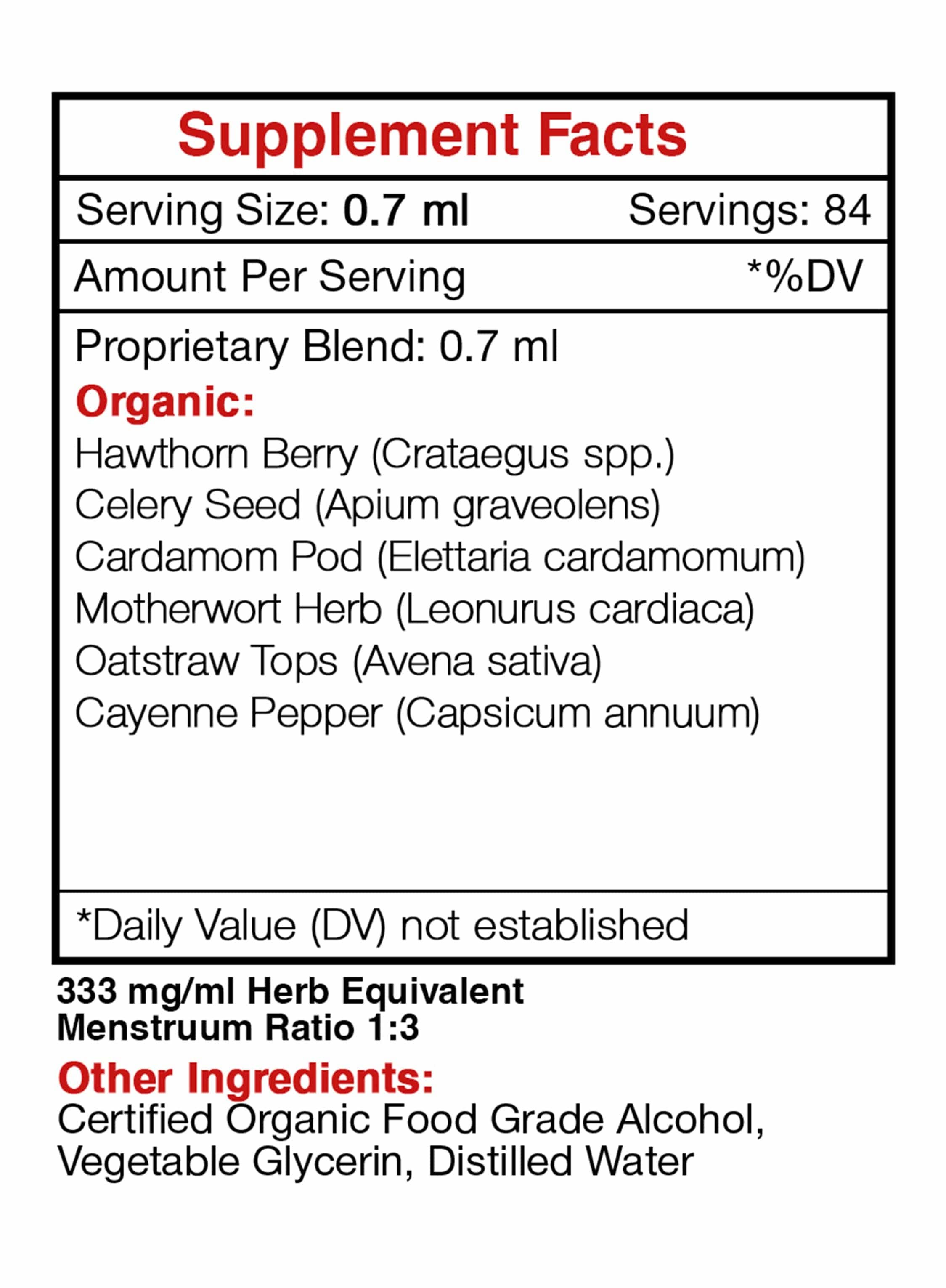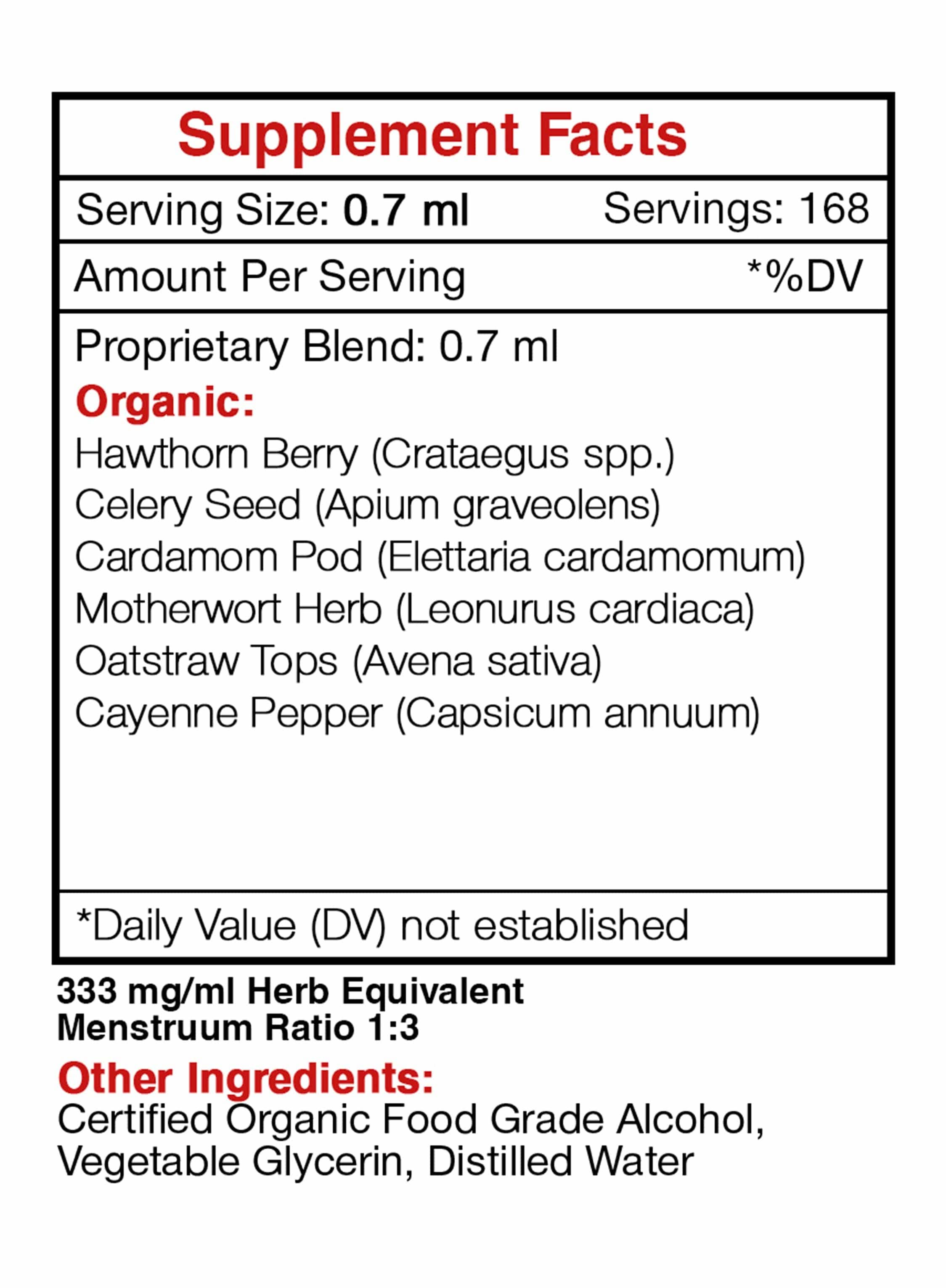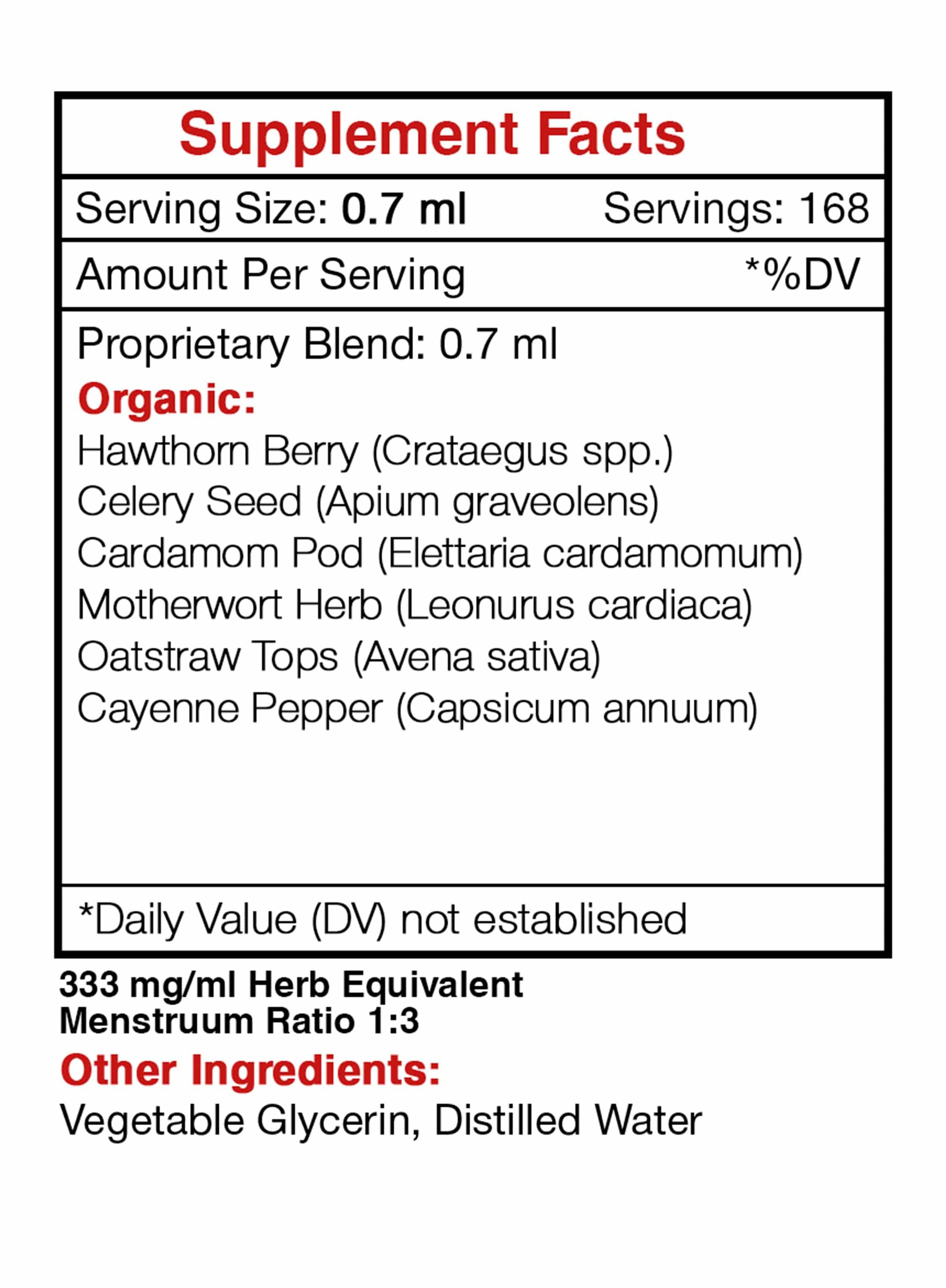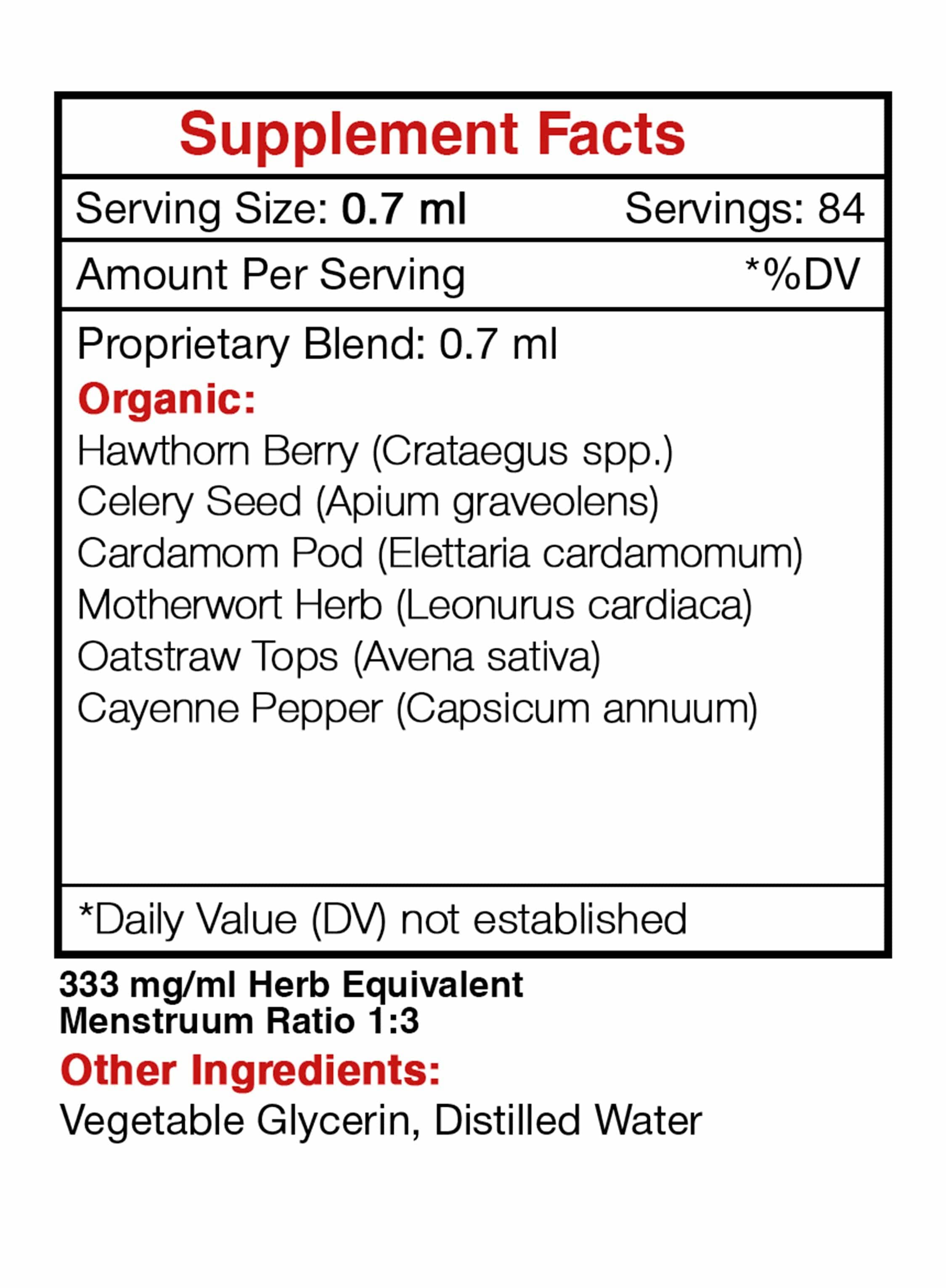 It contains Hawthorn, Celery, Cardamom, Motherwort, and Oatstraw. - The blend promotes balanced blood pressure levels and supports overall cardiovascular health. - The herbs in the blend have been traditionally used to enhance blood flow and improve circulation, which can contribute to healthy blood pressure.